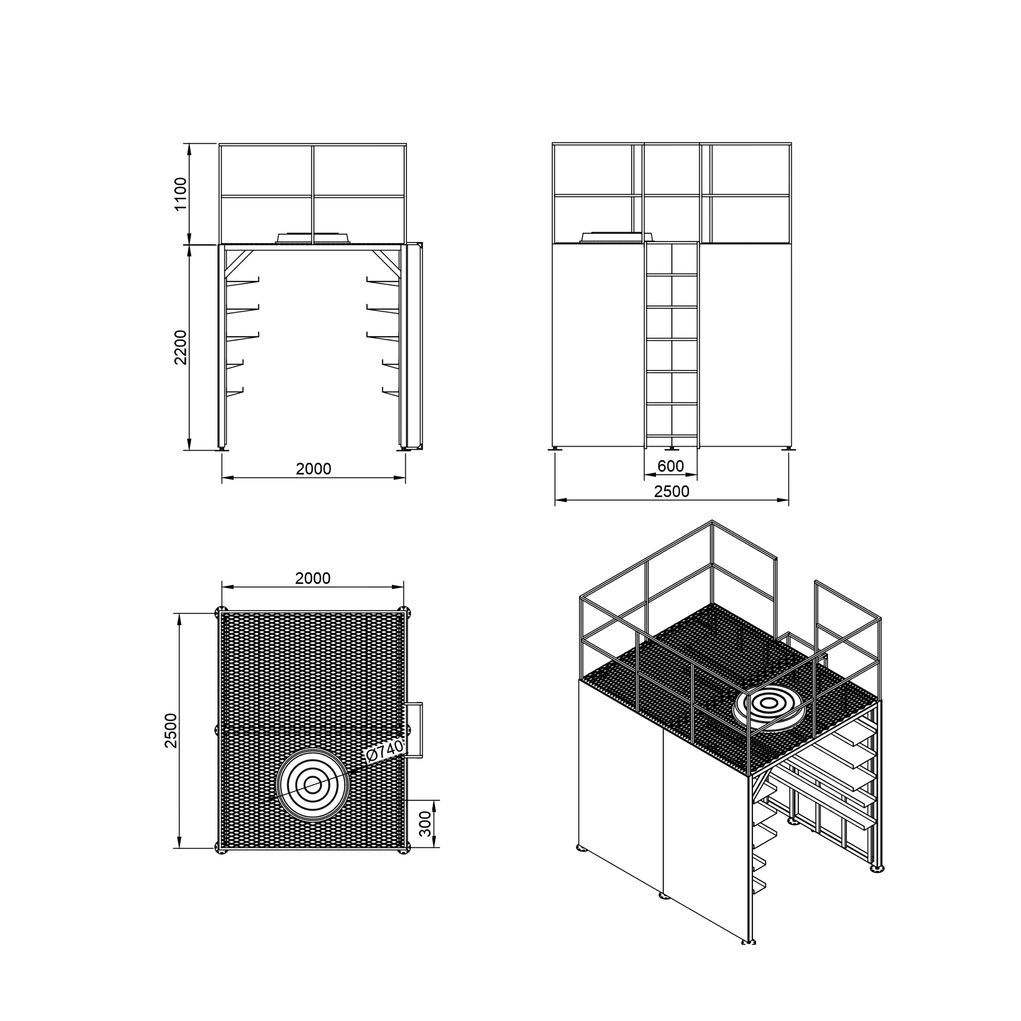 Металлический каркас (проф.труба 60*60*2, 40*40*2, 40*25*2, 25*25*2), обшит ламинированной фанерой 9 мм.;